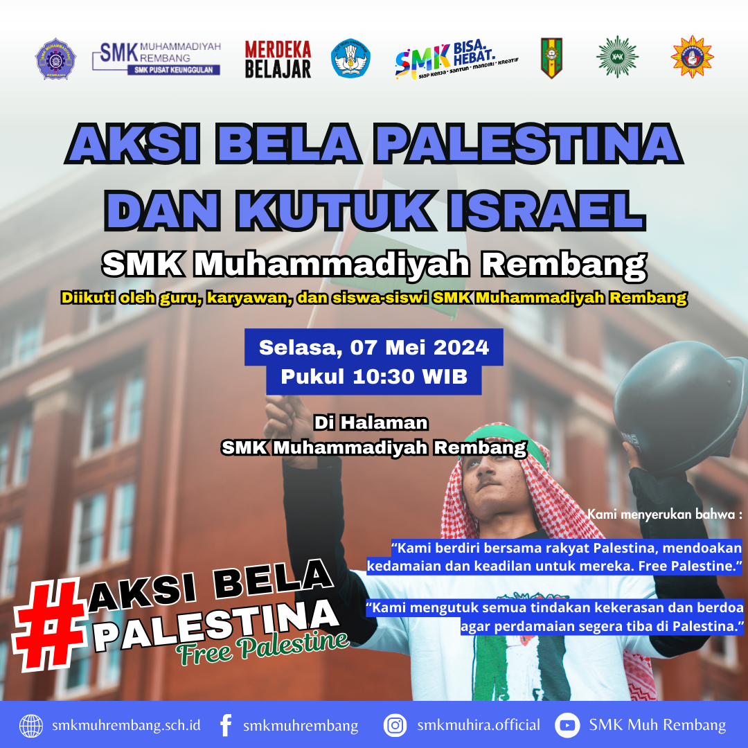 Rembang, 7 Mei 2024 – Dalam solidaritas yang kuat terhadap rakyat Palestina, siswa dan guru SMK Muhammadiyah Rembang mengadakan apel aksi bela P...